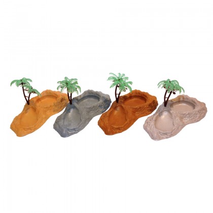Double Food & Water Dish with Palm Tree