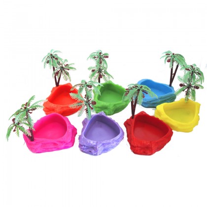 Natural Food/Water Bowls with Palm Tree